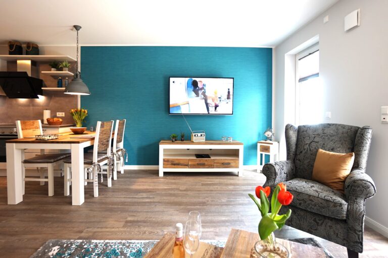 Die Apartments sind allergikerfreundlich, teilweise mit Balkon oder Terrasse und Sauna en suite ausgestattet. Sie genießen hier höchsten Wohnkomfort mit Fußbodenheizung und 3-fach verglasten Fenstern mit elektrischen Außenjalousien sowie modernen Designer-Möbelstücken. Die Schlafzimmer verfügen über hochwertige Boxspringbetten mit Topper. Zudem erhalten Sie kostenfreies Power-WLAN.