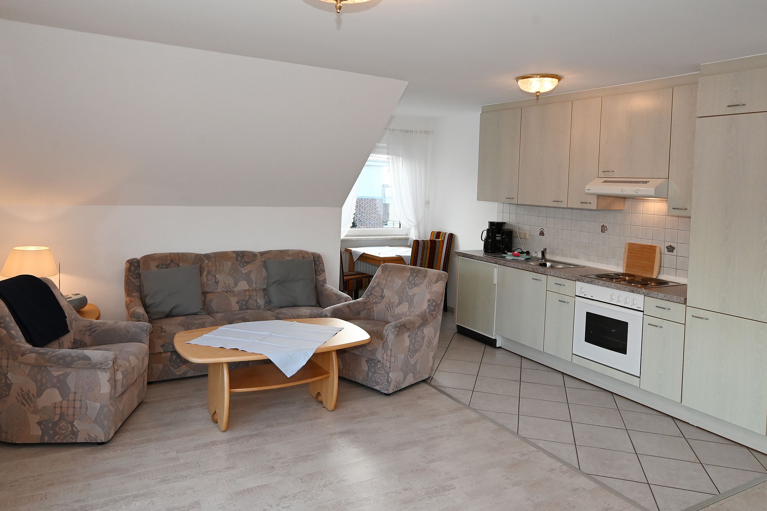 Auf gleicher Ebene befindet sich eine komplett ausgestattete Kochnische, sowie...