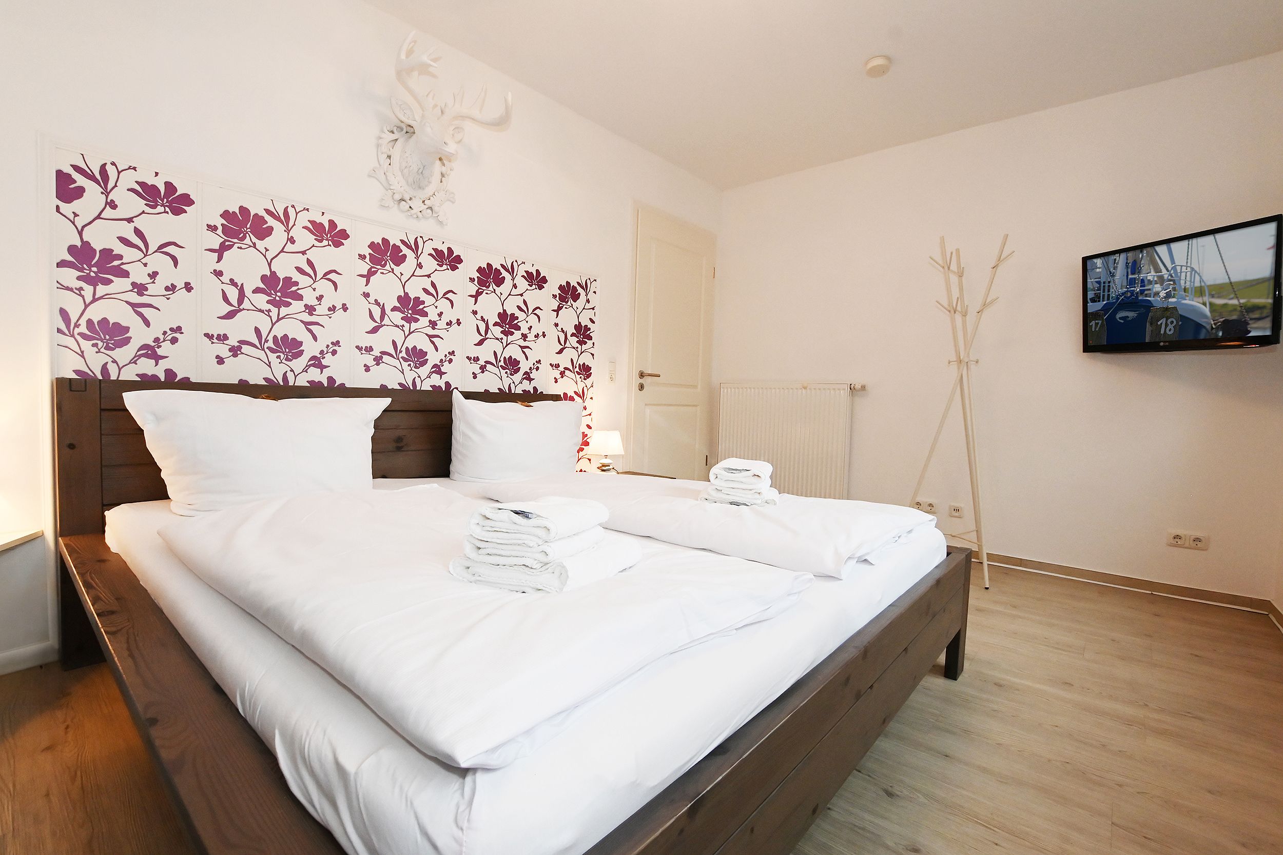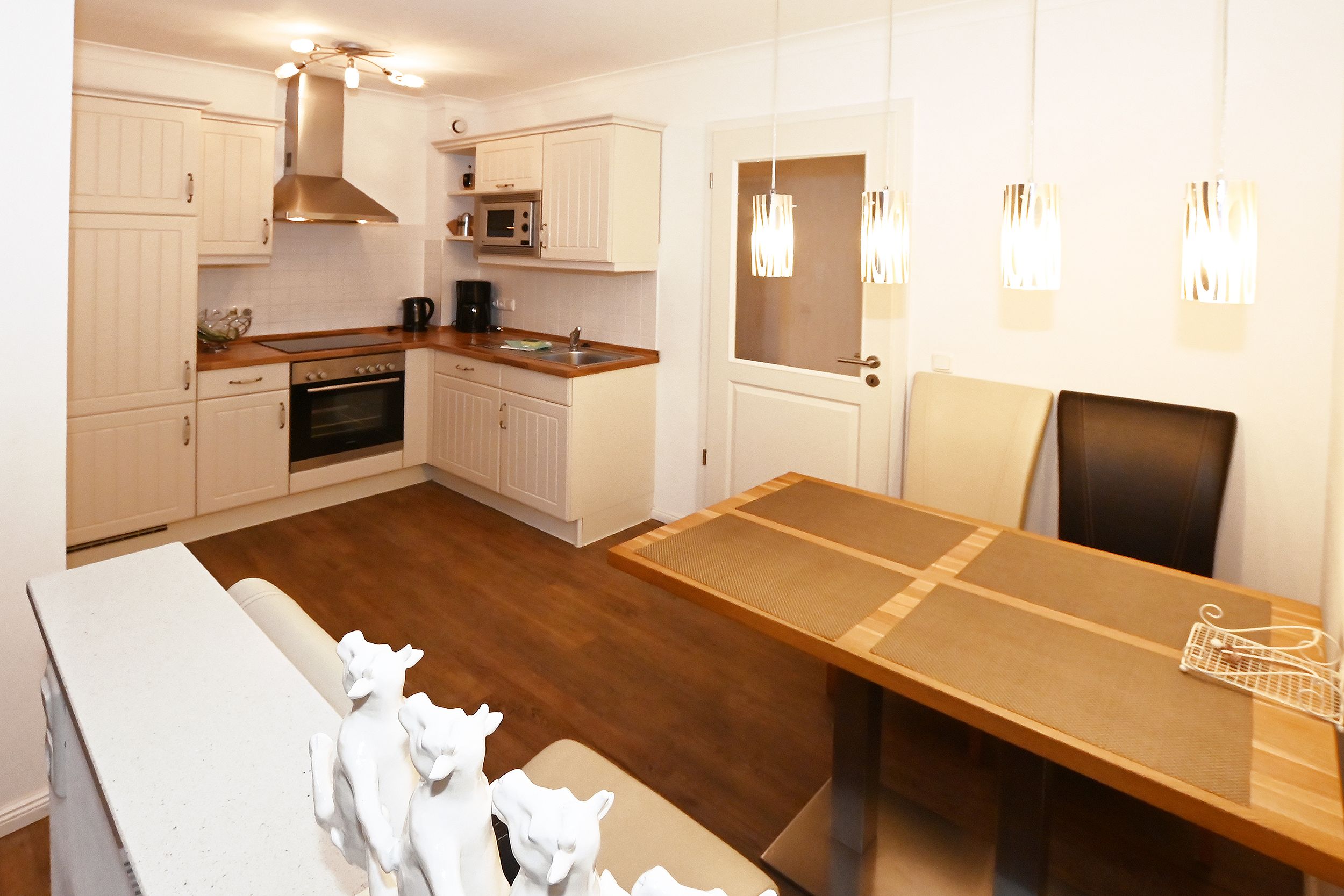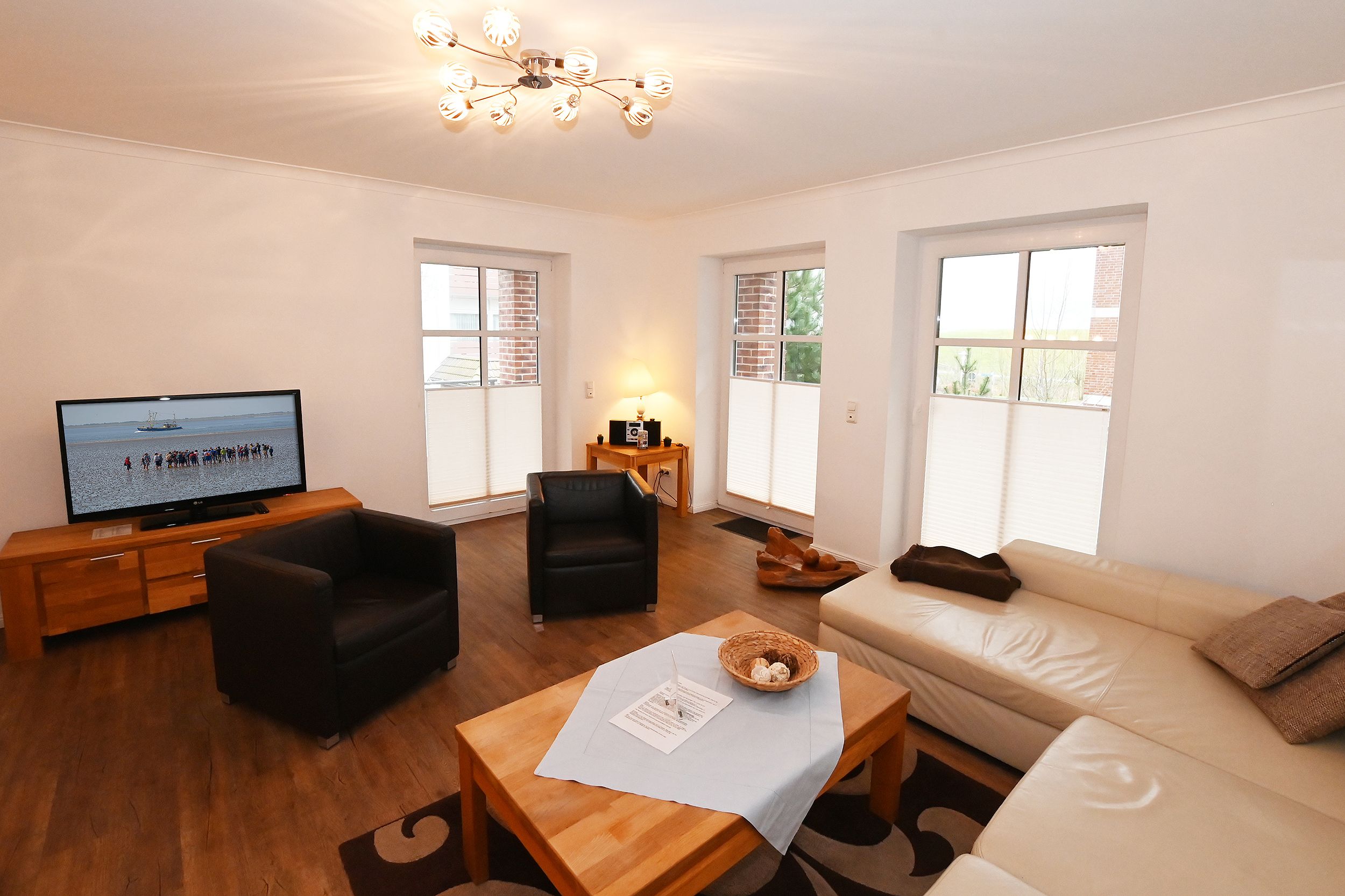 Etwas Luft nach oben gibt es auch bei dieser wirklich sehr, sehr schönen FeWo: Elektrische Beleuchtung u.a. im Wohnzimmer sehr hell;leider nicht dimmbar; keine Stehlampe etc. für ein gedämpftes Licht. Abends deshalb (leicht vermeidbar) ungemütlich. WLAN im Wohnzimmer recht schwach. Kein sicheres Streamen möglich.