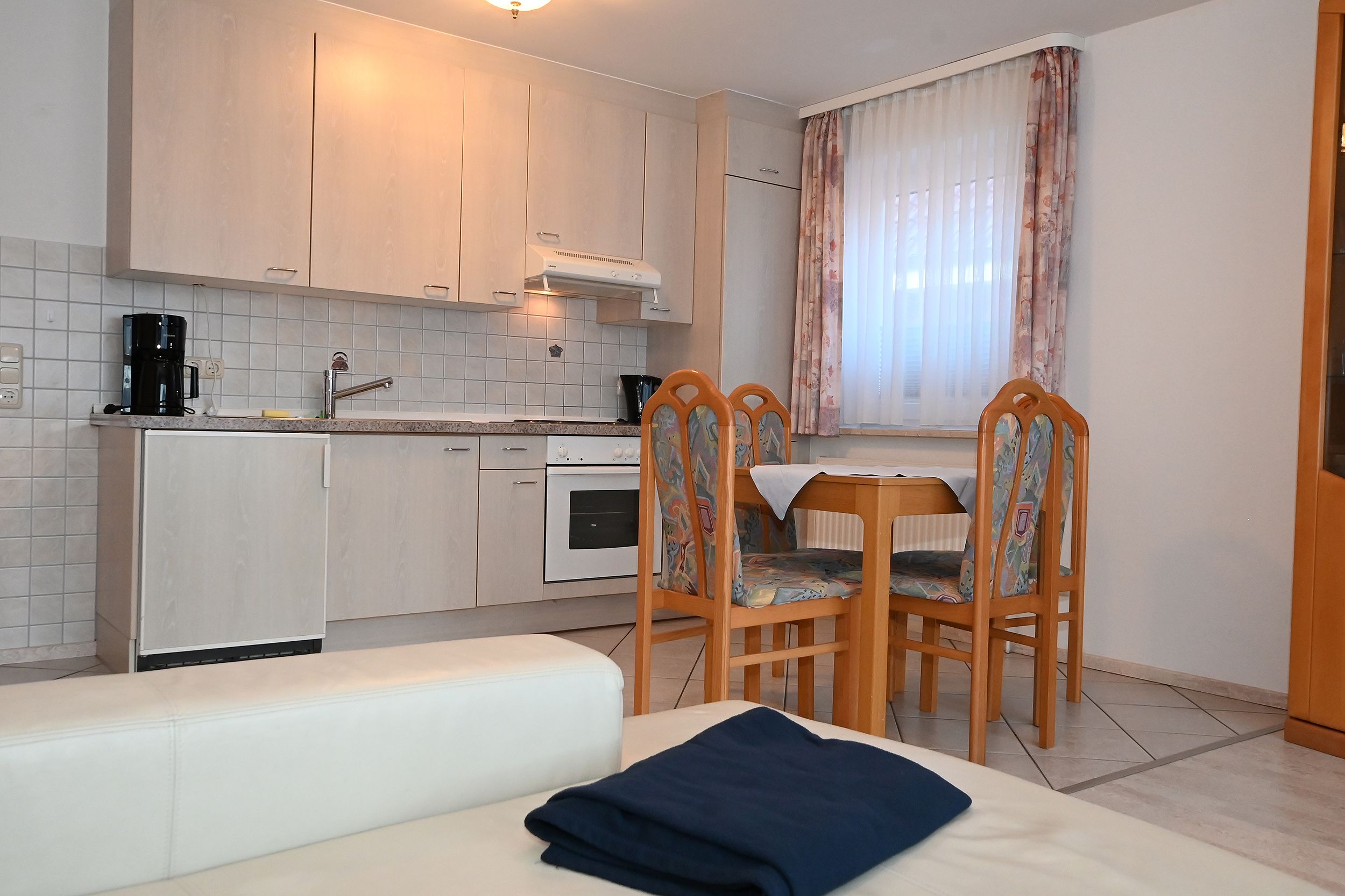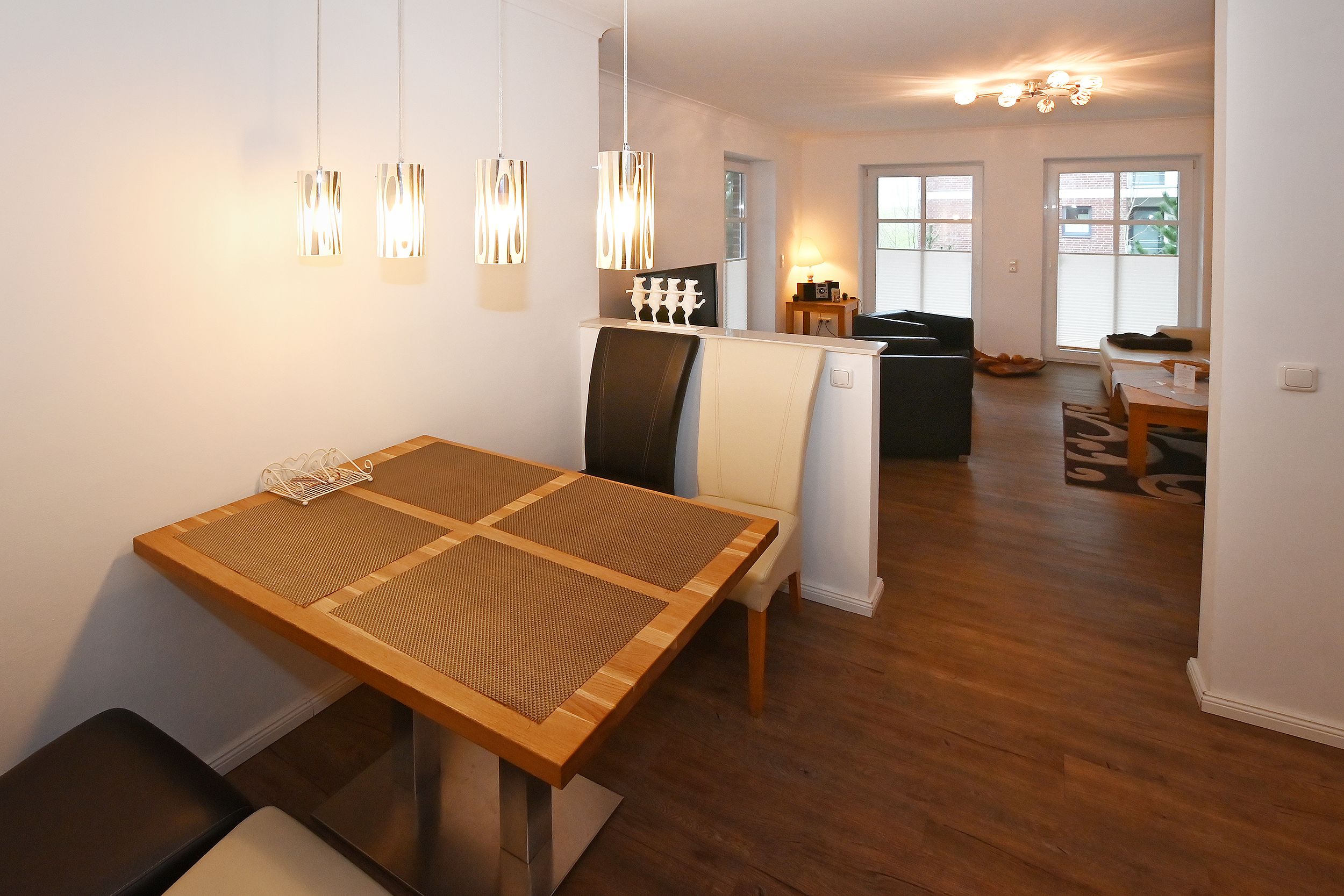 Eine tolle Wohnung, Zwei Einschränkungen: die Essecke ist sehr eng und im Wohnzimmer fehlen Vorhänge, denn es hallt, wie in einer großen Halle.
