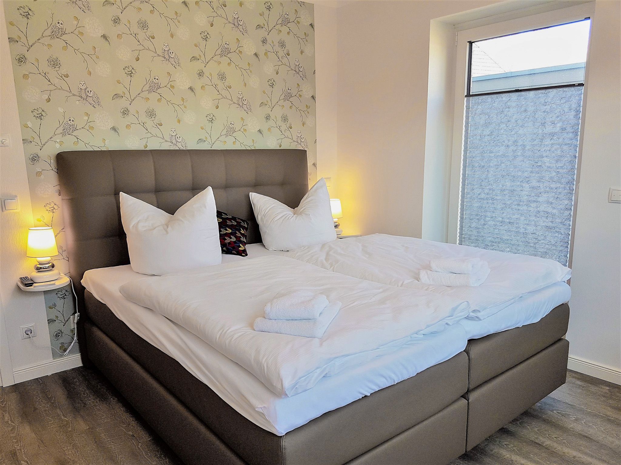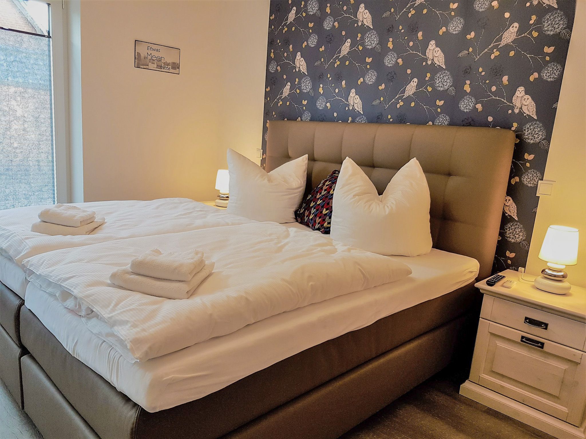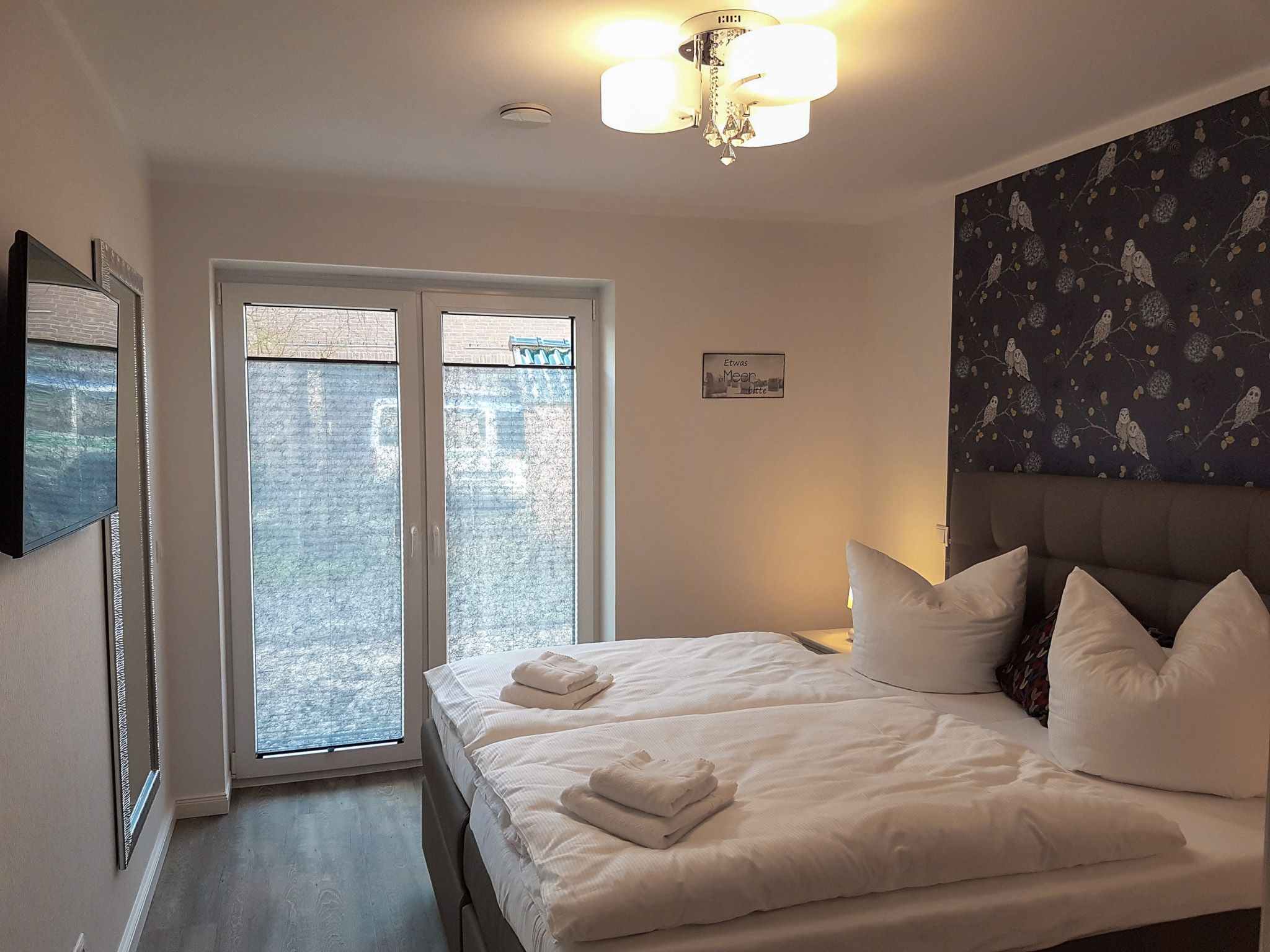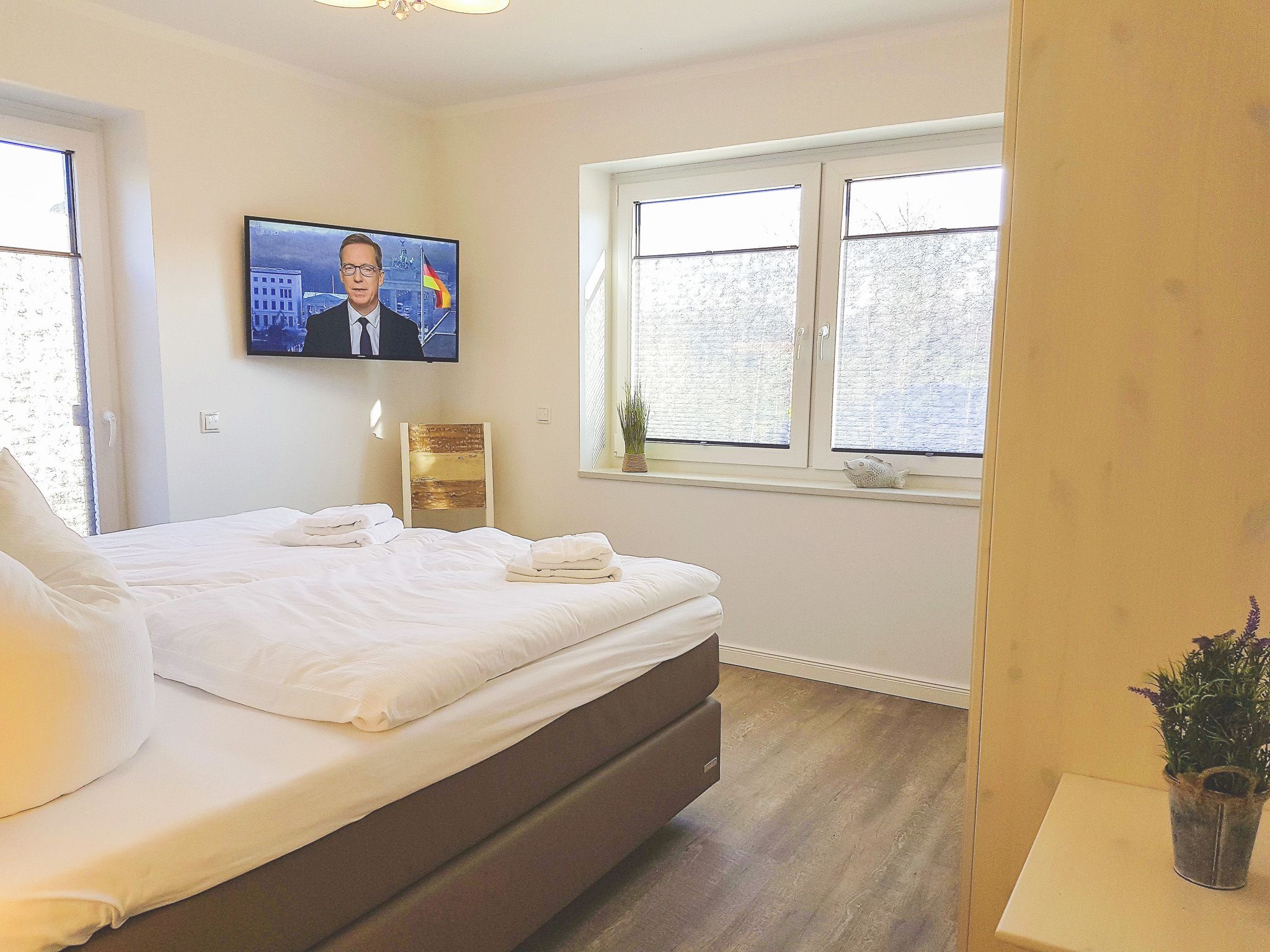 Die Wohnung ist absolut zu empfehlen. Die Küche ist sehr gut ausgestattet, die Betten sind sehr bequem. Im Wohnzimmer und in jedem Schlafzimmer ein Fernseher mit Internetanschluss. Duschbad und separate Toilette lassen keine Wartezeiten aufkommen. Besonders angenehm empfand ich auch die Fußbodenheizung und die elektrischen Rollläden an allen Fenstern. Auch die Lage der Wohnung ist prima. In weniger als 10 Minuten erreicht man die Fußgängerzone, der Bäcker ist fußläufig in 3 Minuten erreichbar, Parkplätze gibt es direkt vor dem Haus. Was will man mehr?