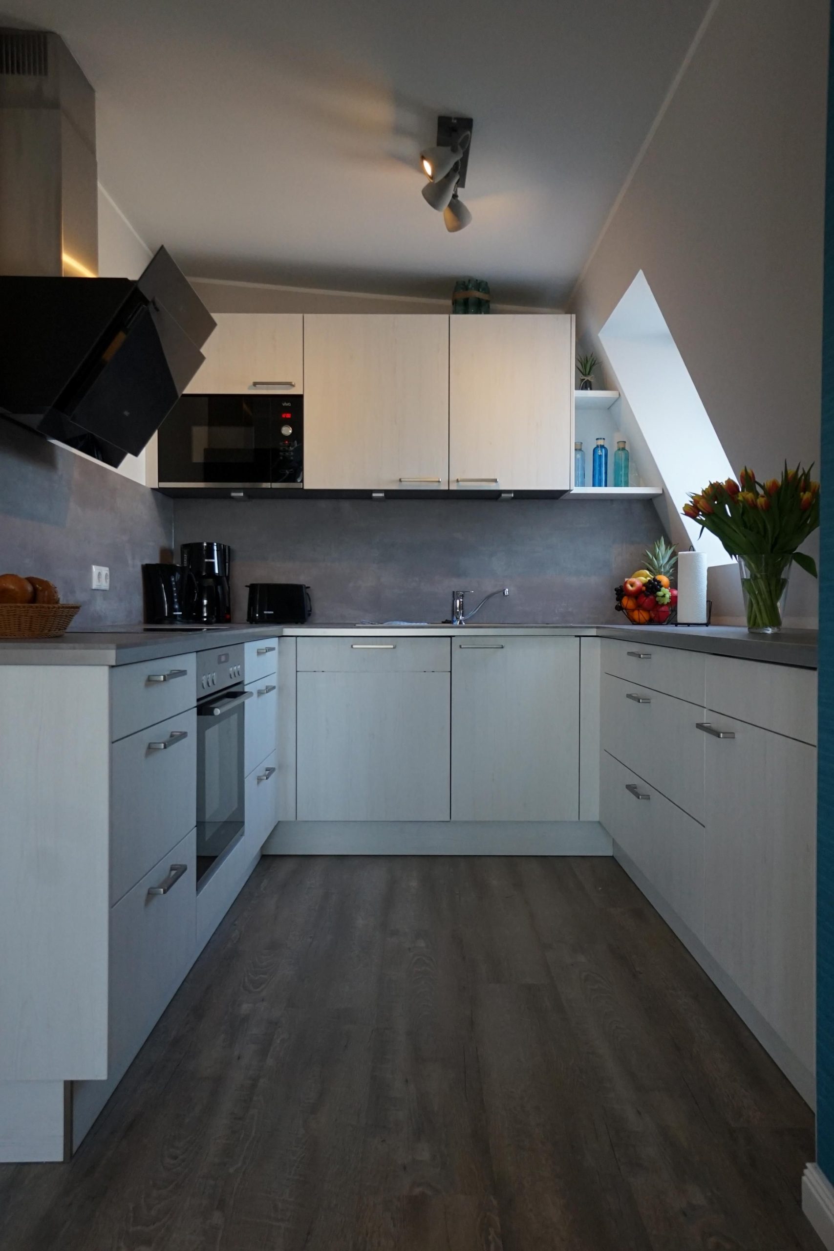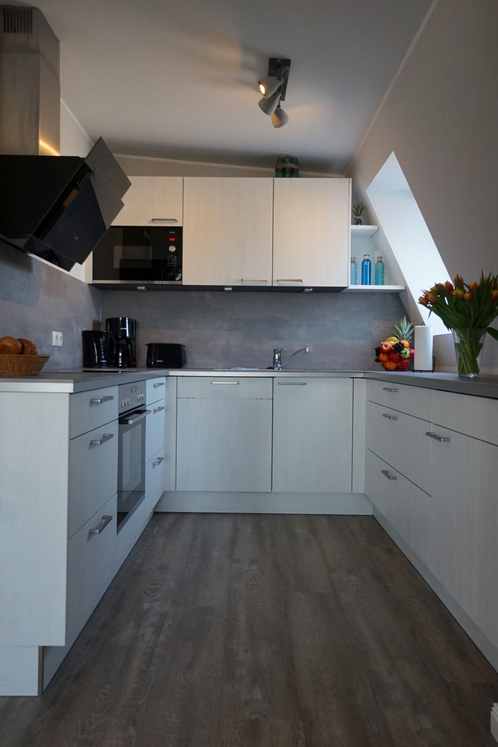 Sehr schöne Wohnung mit guter Ausstattung. Alle Betten waren hervorragend. Die Bäder groß und sauber. Hier fehlen nur ein paar Handtuchhaken. Ausreichend Geschirr in der Küche vorhanden. Nur kleine, scharfe Küchenmesser haben gefehlt. Es war nur eines vorhanden. Zu unserer Zeit hat auch ein Schuhschrank oder Schuhregal im Flur gefehlt. Besonders zu erwähnen ist der große Balkon, von dem man auf den Hafen und Deich blicken kann. Die Wohnung ist optimal aufgeteilt. Kleinere Schlafzimmer, großzügiger Wohn- und Essbereich mit integrierter Küche. Wohnung ist sehr empfehlenswert, wir würden sie jederzeit wieder buchen.